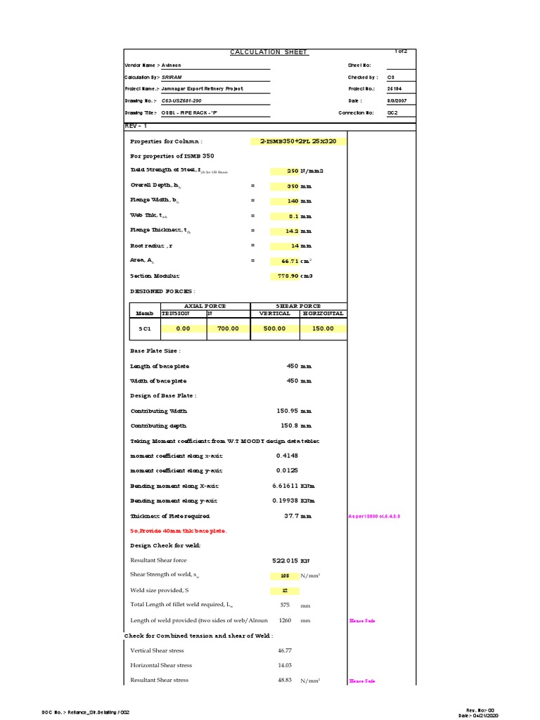 CALCULATION SHEET 1 of 2