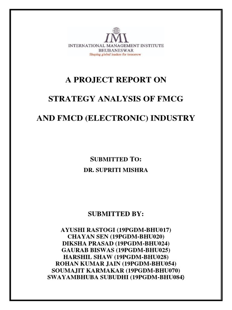 A Project Report On Strategy Analysis of FMCG and FMCD (Electronic) Industry