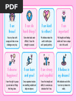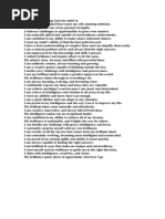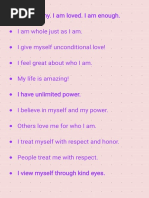 This short document expresses positive affirmations about the author's attributes, relationships, activities, and feelings of self-worth. The author states they are smart, healthy, beautiful, and brave, love their kids and grandchildren, enjoy cooking and reading, feel loved and safe, and believe they deserve great things as their children love them.