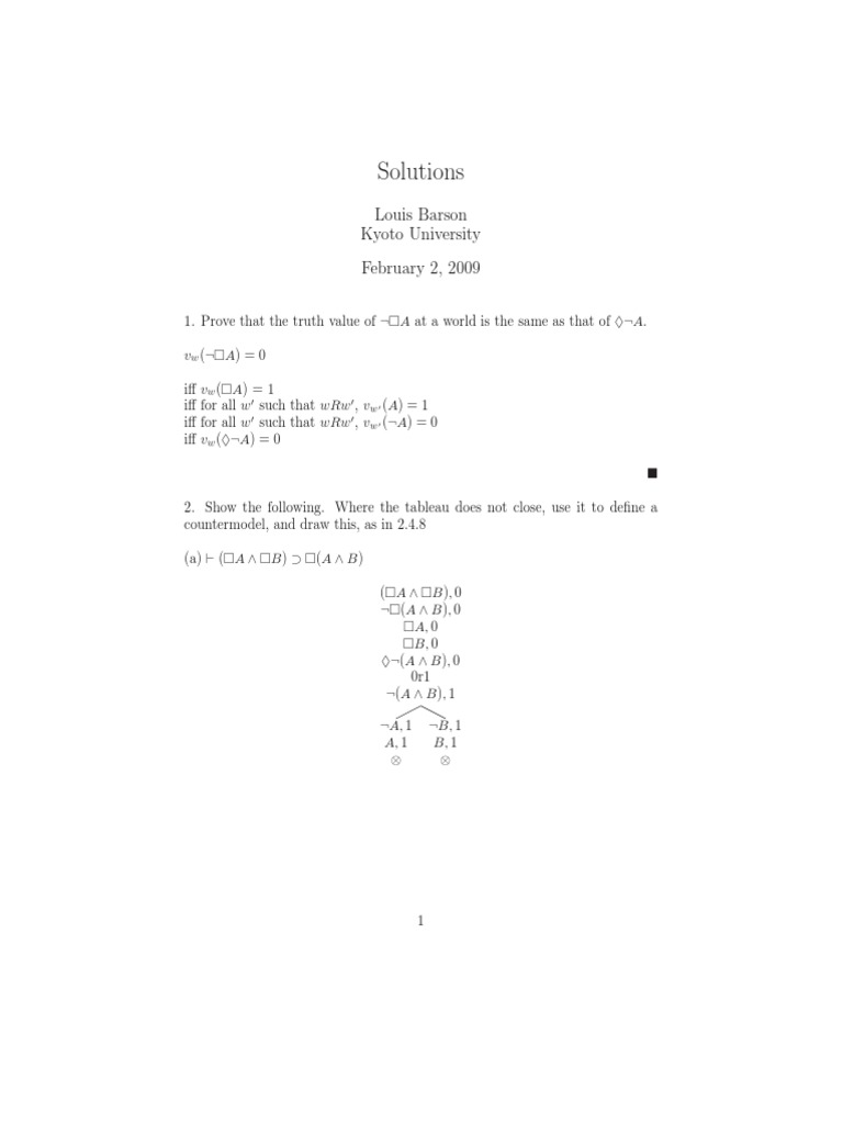 1. Prove that the truth value of ¬A at a world is the same as that of ♦¬A.