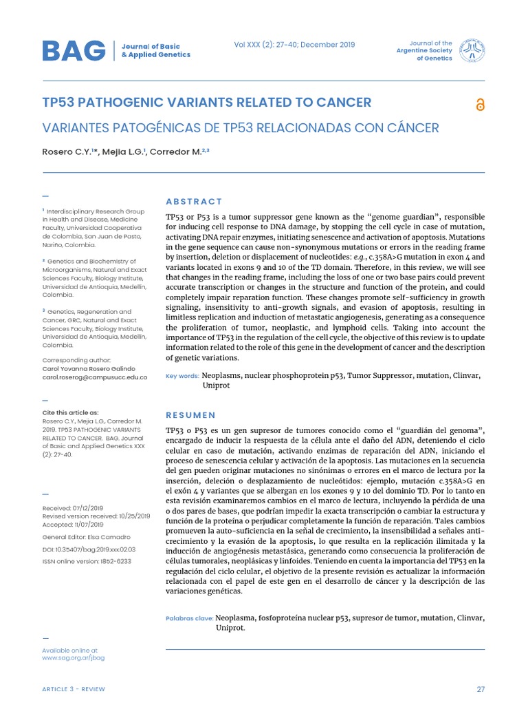 Palabras clave: Neoplasma, fosfoproteína nuclear p53, supresor de tumor, mutation, Clinvar,