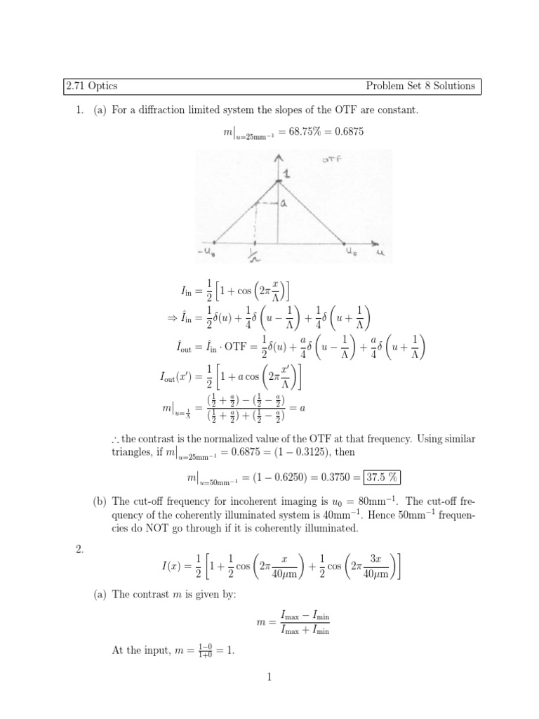 1. (a) For a diffraction limited system the slopes of the OTF are constant.