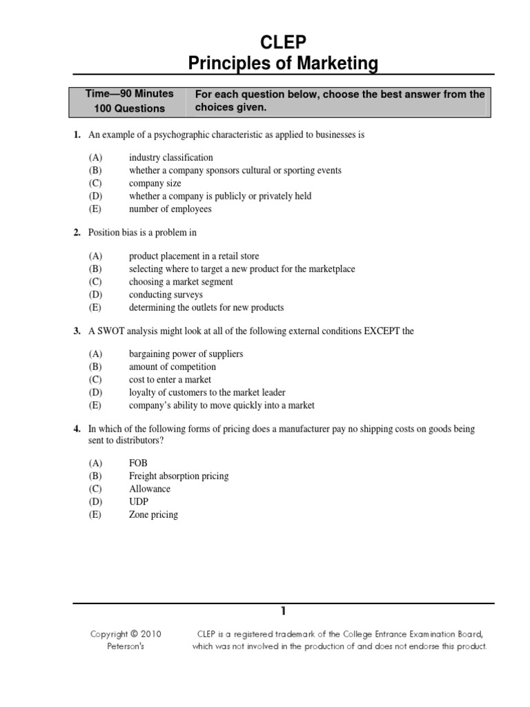 Copyright © 2010 CLEP is a registered trademark of the College Entrance Examination Board,