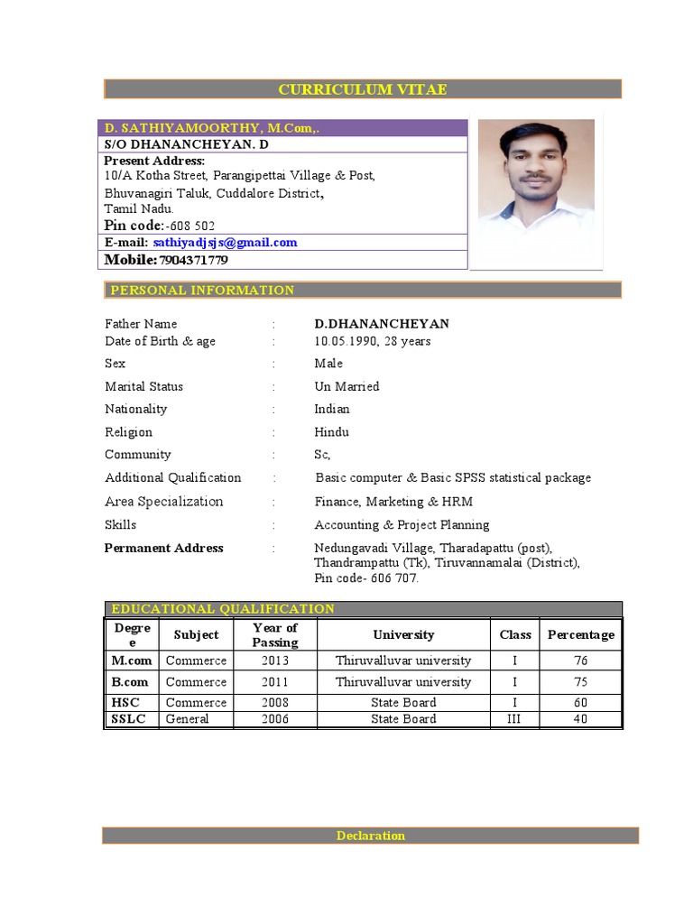 Permanent Address : Nedungavadi Village, Tharadapattu (post),