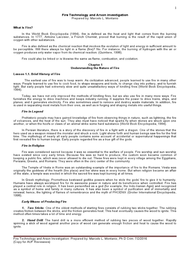 Fire Technology and Arson Investigation: Prepared by: Marcelo L. Montanio, Ph D Crim. 7/2/2016