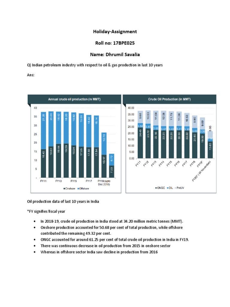 Q) Indian petroleum industry with respect to oil & gas production in last 10 years