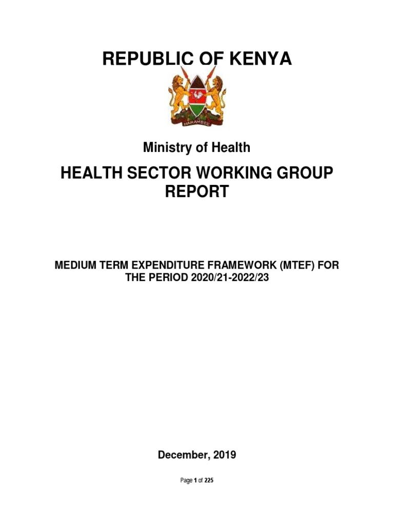 The Health Sector Working Group (SWG) Report 2020/21-2022/23 has been prepared to
