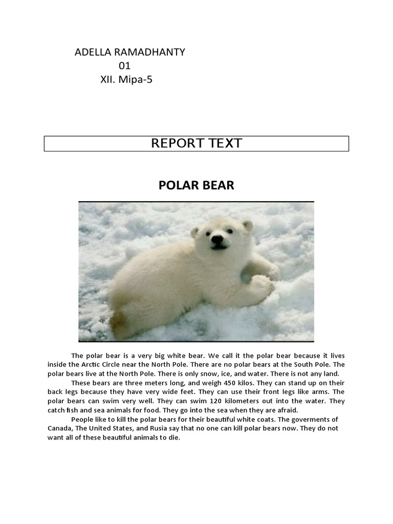 The polar bear is a very big white bear. We call it the polar bear because it lives