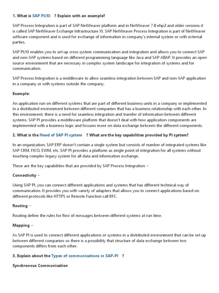4. Explain about SAP PI Technologies?