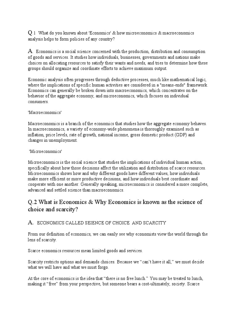 1 What do you known about 'Economics' & how microeconomics & macroeconomics
