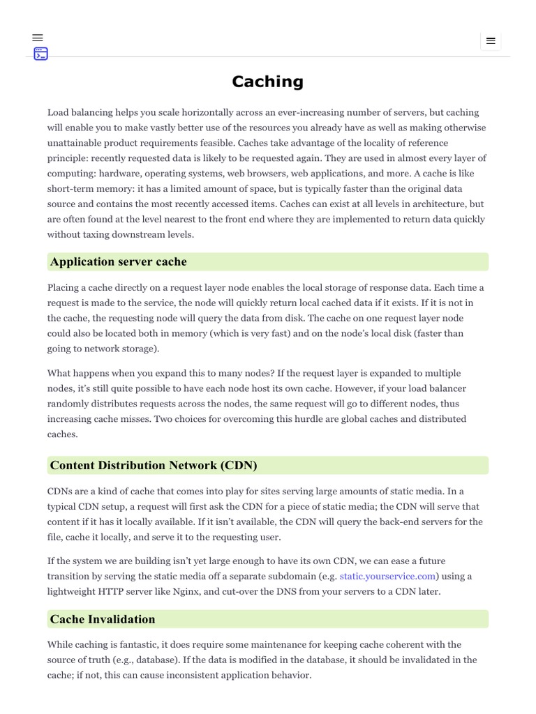 Placing a cache directly on a request layer node enables the local storage of response data. Each time a