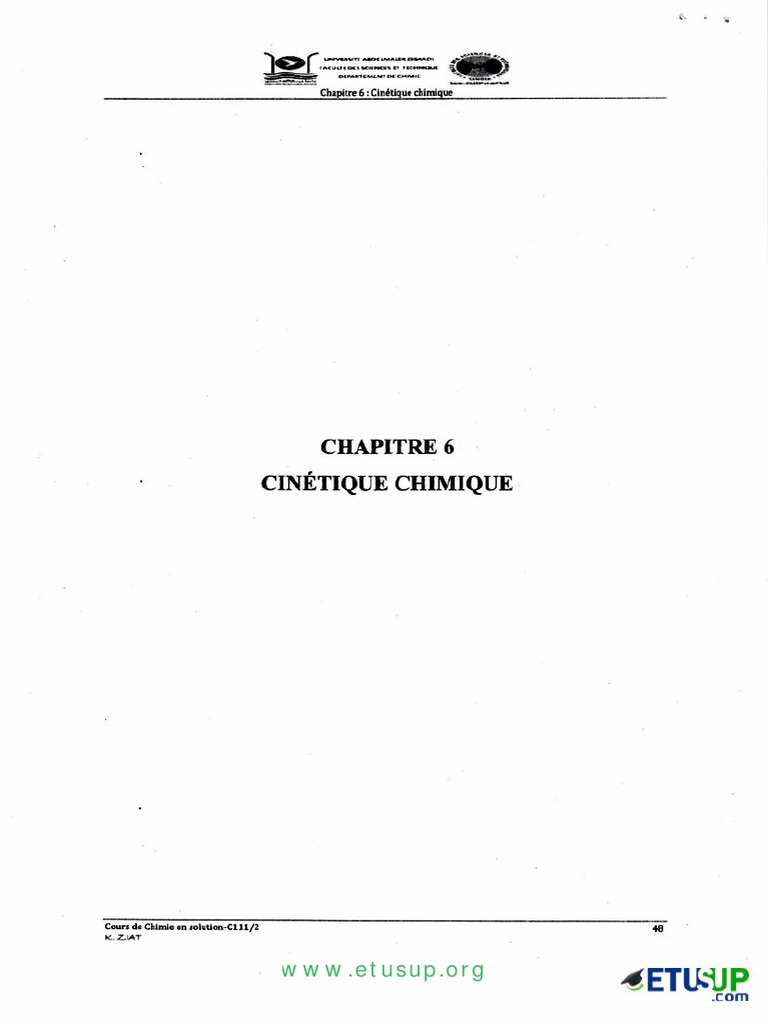 Chapitre 6 cinétique chimique Visitez le site : https://www.etusup.org