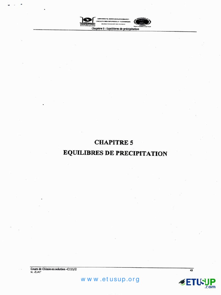 Chapitre 5 Equilibres de Precipitation Visitez le site : https://www.etusup.org