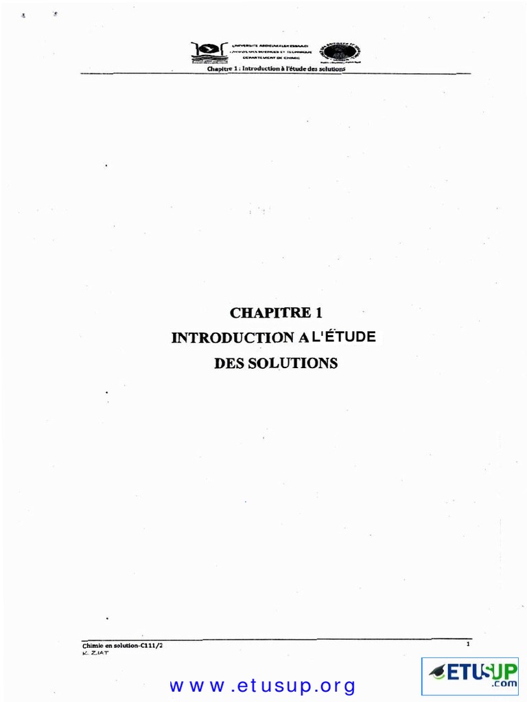 Save Chapitre 1 introduction à la l'étude des solutio... For Later