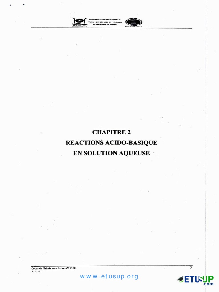 Chapitre 2 Reactions Acido-Basique en Solution Aqueuse