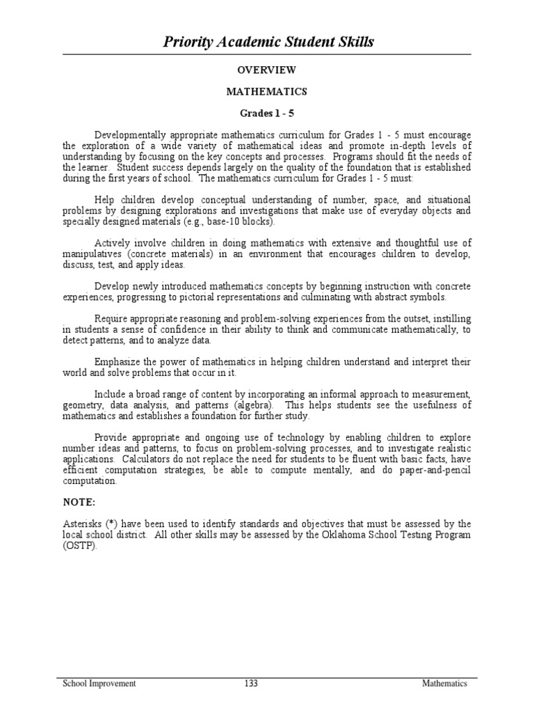 local school district. All other skills may be assessed by the Oklahoma School Testing Program