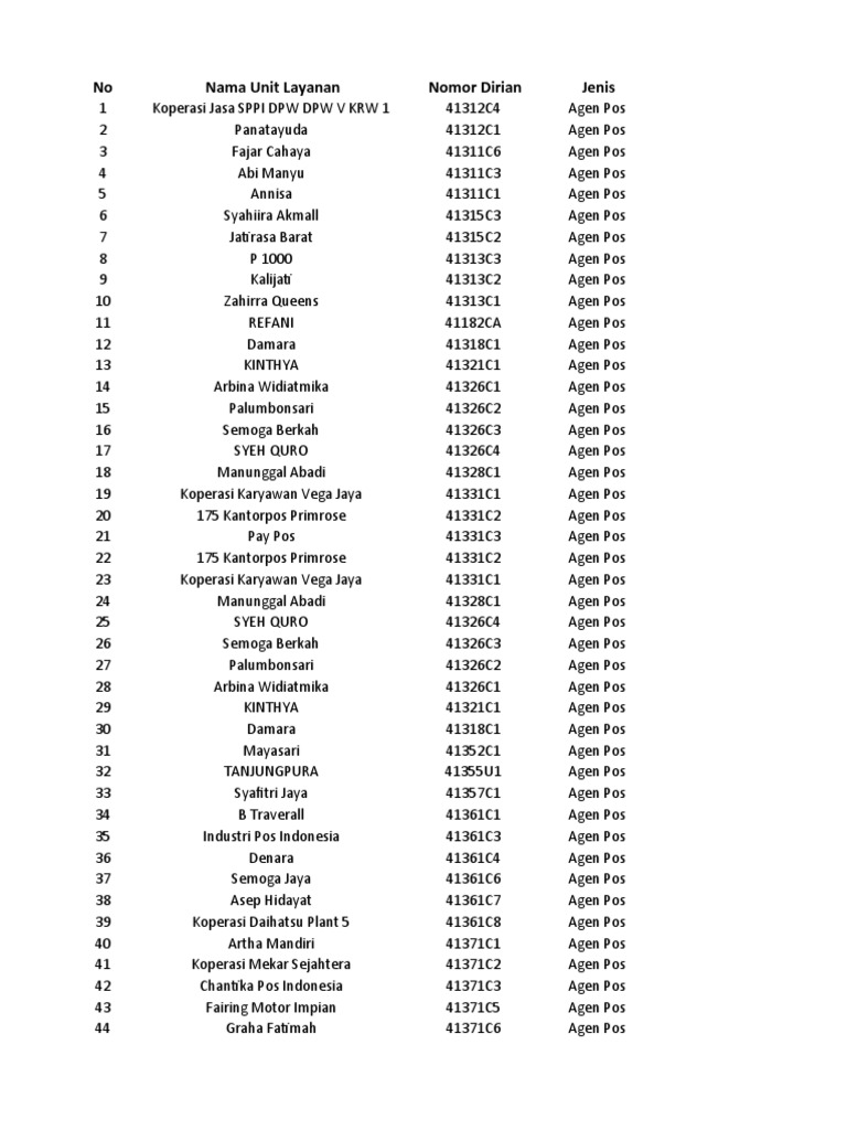 41 Koperasi Mekar Sejahtera 41371C2 Agen Pos