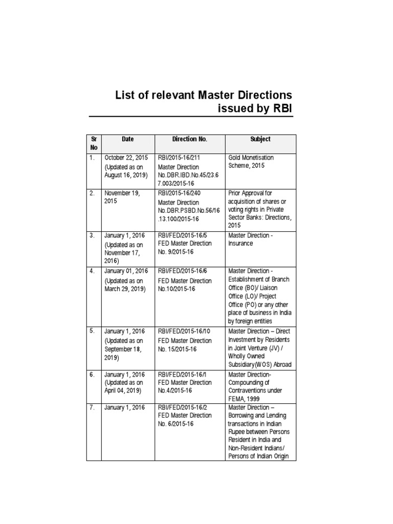 5. January 1, 2016 RBI/FED/2015-16/10 Master Direction – Direct