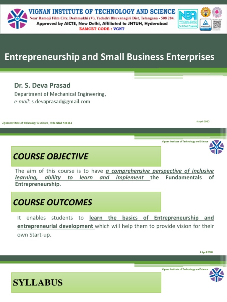 It enables students to learn the basics of Entrepreneurship and
