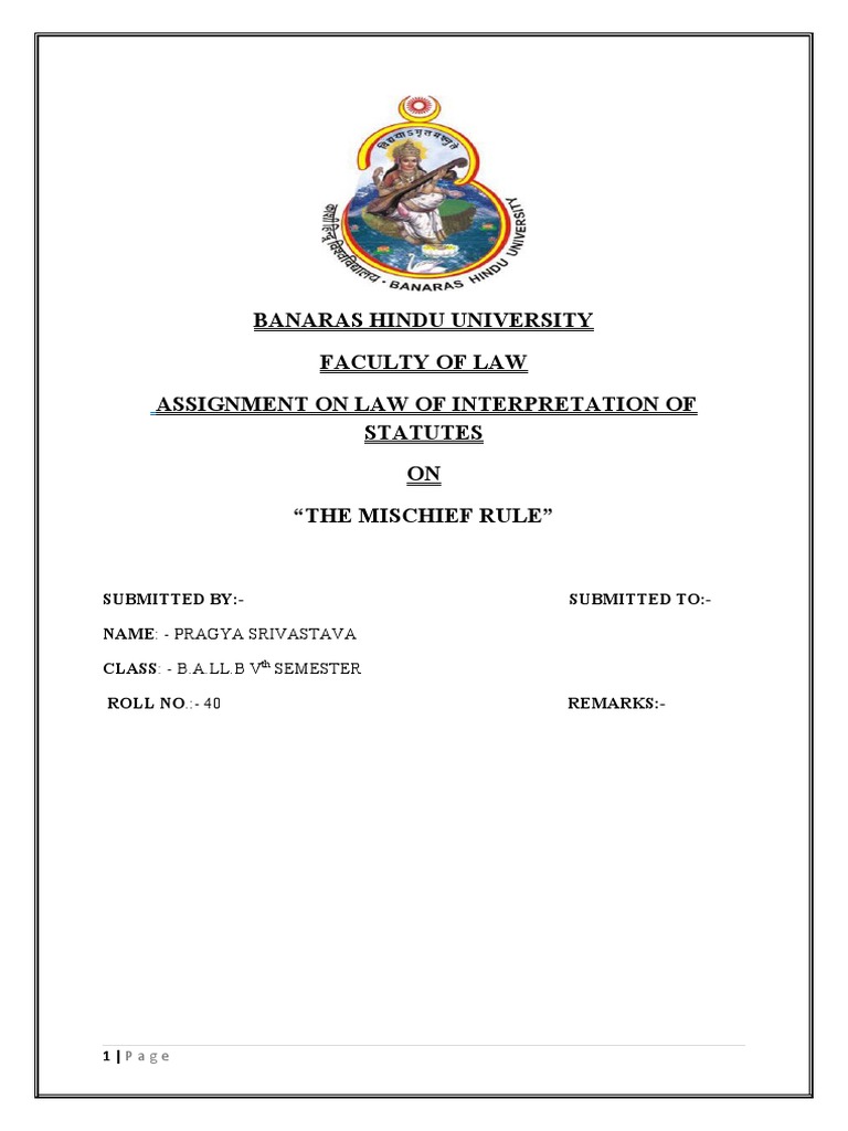 wonderful project on the topic “The Mischief Rule”, which also