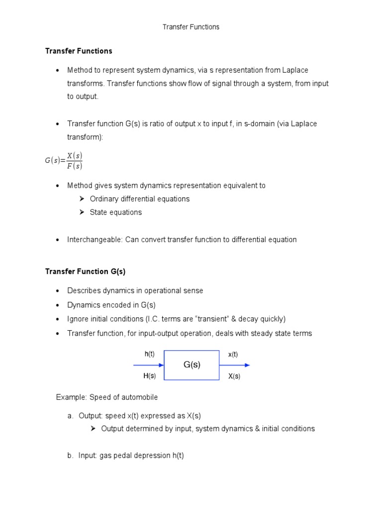transforms. Transfer functions show flow of signal through a system, from input