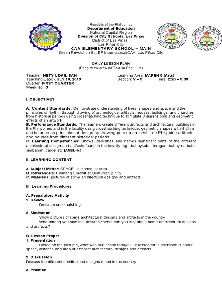 Teacher: NETY I. DAILISAN Learning Area: MAPEH 5 (Arts)