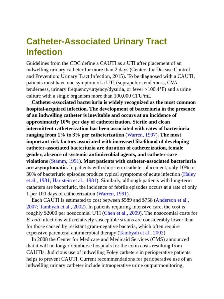 Guidelines from the CDC define a CAUTI as a UTI after placement of an