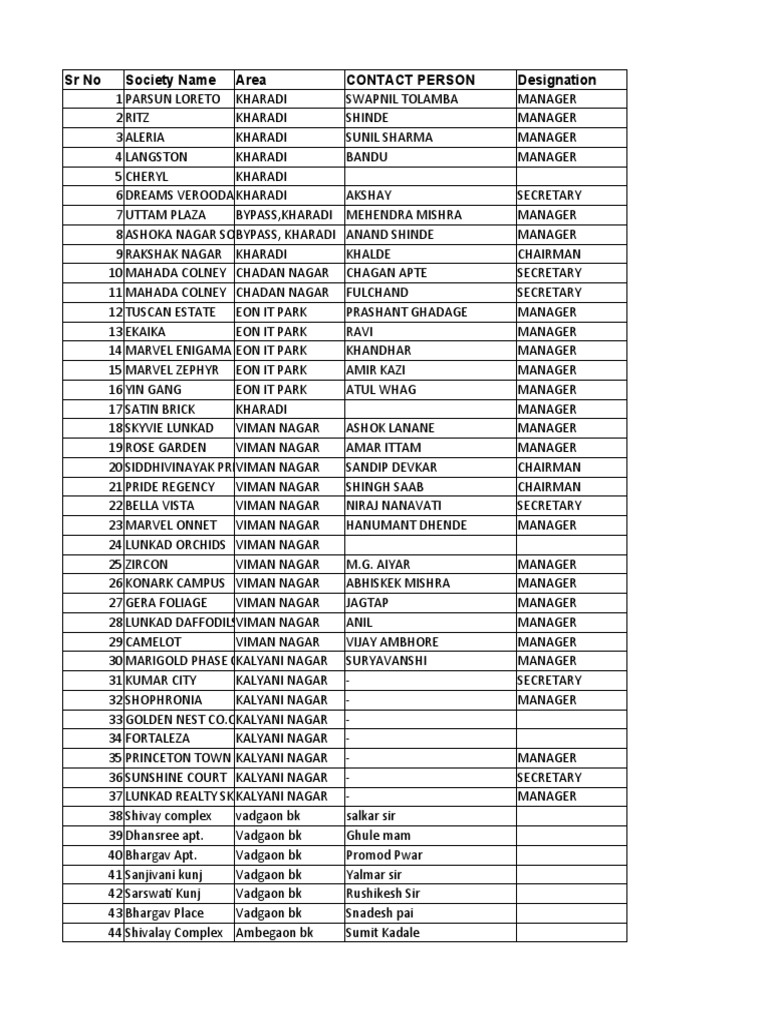 22 BELLA VISTA VIMAN NAGAR NIRAJ NANAVATI SECRETARY