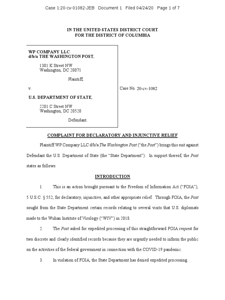 Case 1:20-cv-01082-JEB Document 1 Filed 04/24/20 Page 1 of 7