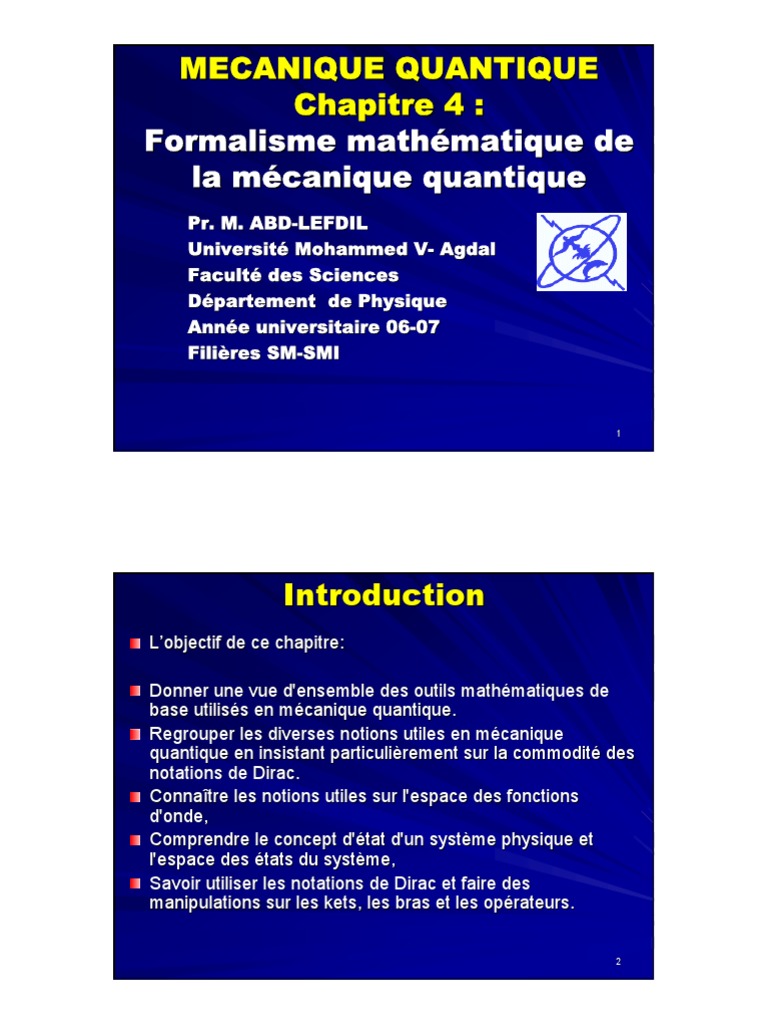 Chapitre 4 Formalisme mathématique de la mécanique quantique
