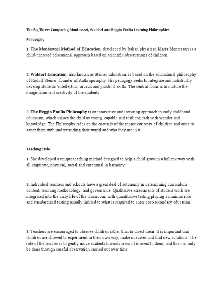 The Big Three: Comparing Montessori, Waldorf and Reggio Emilia Learning Philosophies