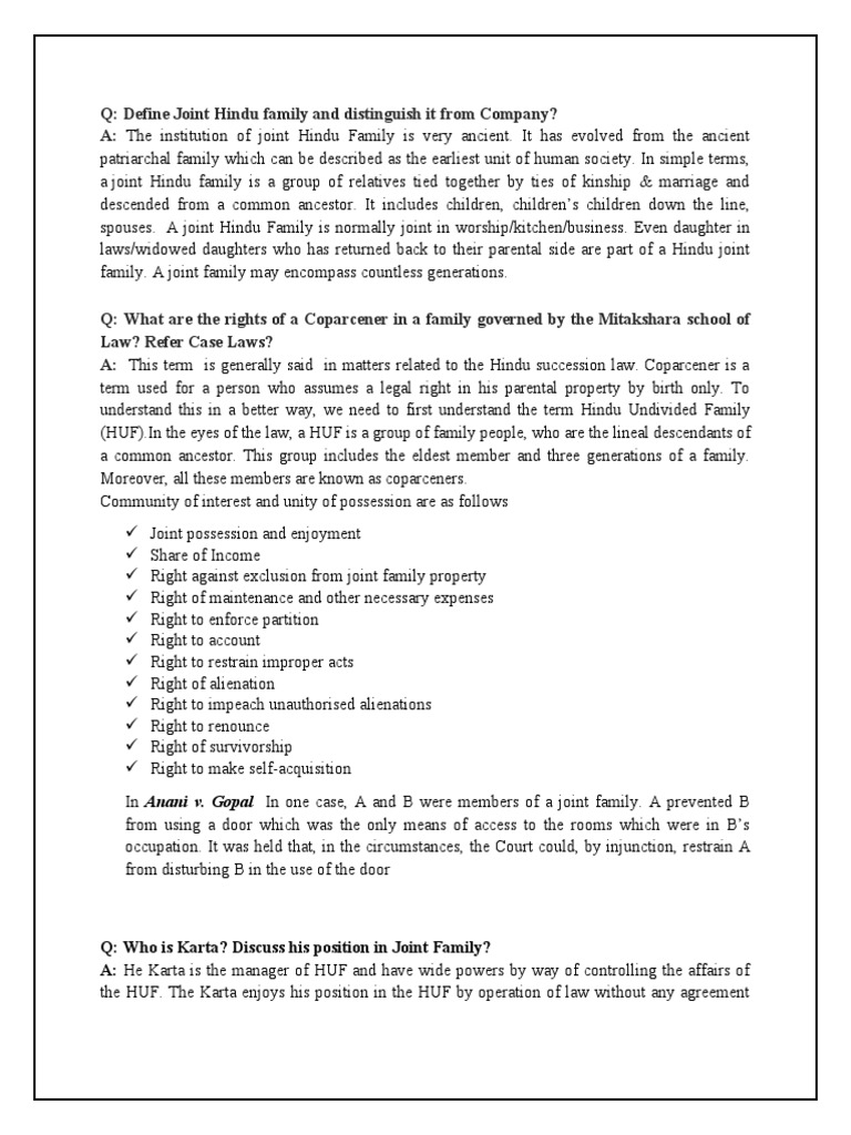 A: The institution of joint Hindu Family is very ancient. It has evolved from the ancient