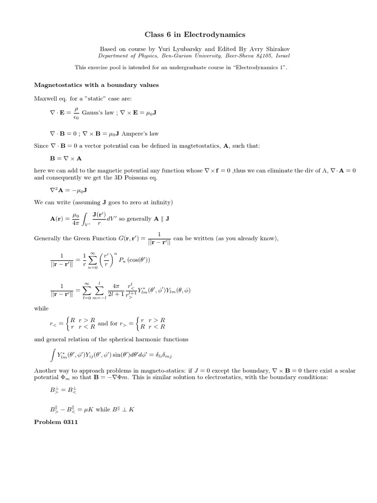 potential Φm so that B = −∇Φm. This is similar solution to electrostatics, with the boundary conditions: