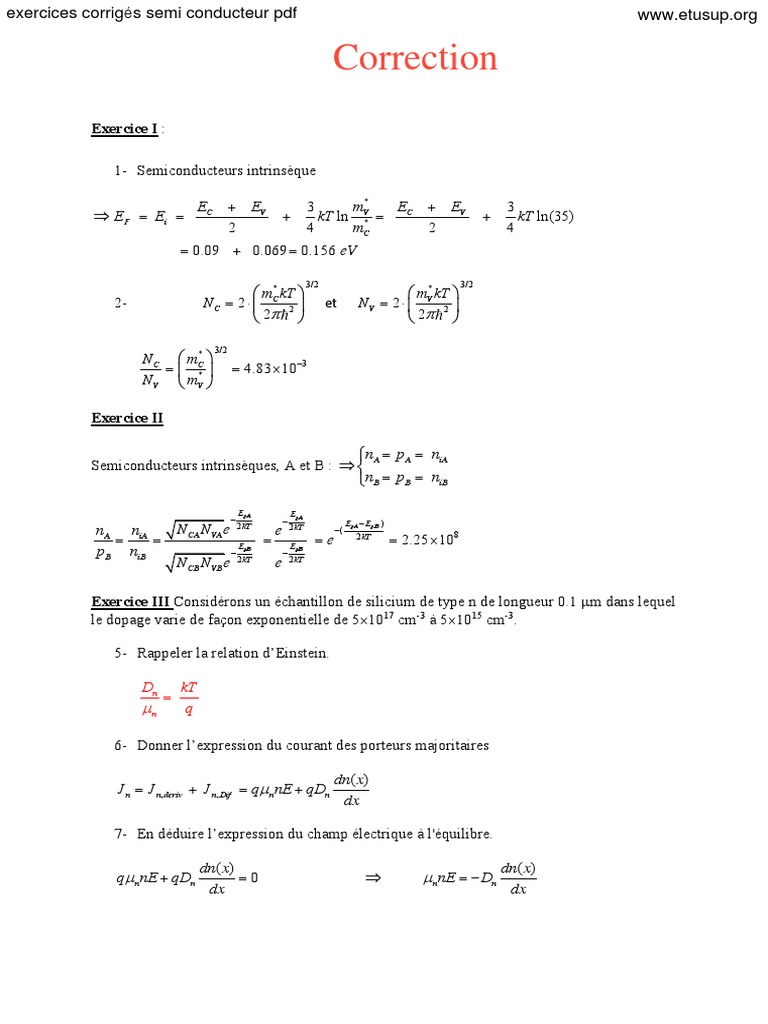 exercices corrigés semi conducteur pdf visitez notre site : https://www.etusup.org