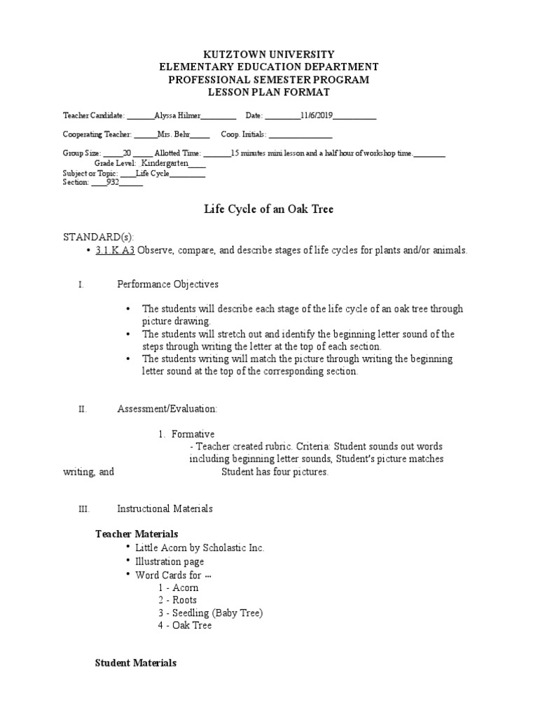 Teacher Candidate: _______Alyssa Hilmer_________ Date: _________11/6/2019___________