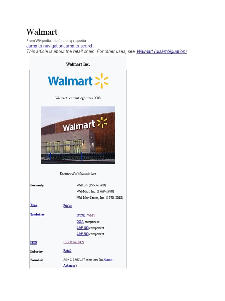 This article is about the retail chain. For other uses, see Walmart (disambiguation).