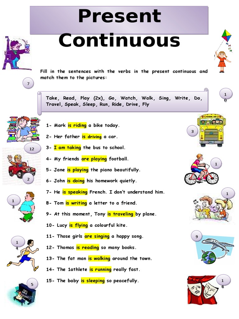Fill in the sentences with the verbs in the present continuous and