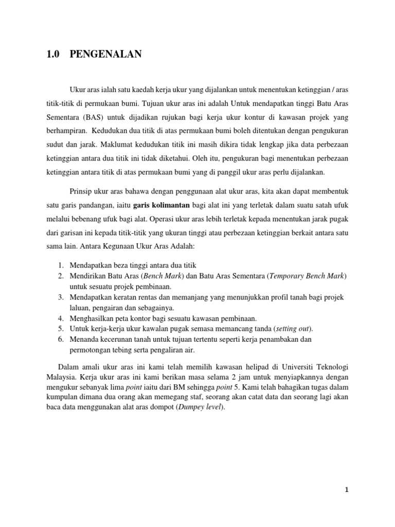 ketinggian antara titik di atas permukaan bumi yang di panggil ukur aras perlu dijalankan.