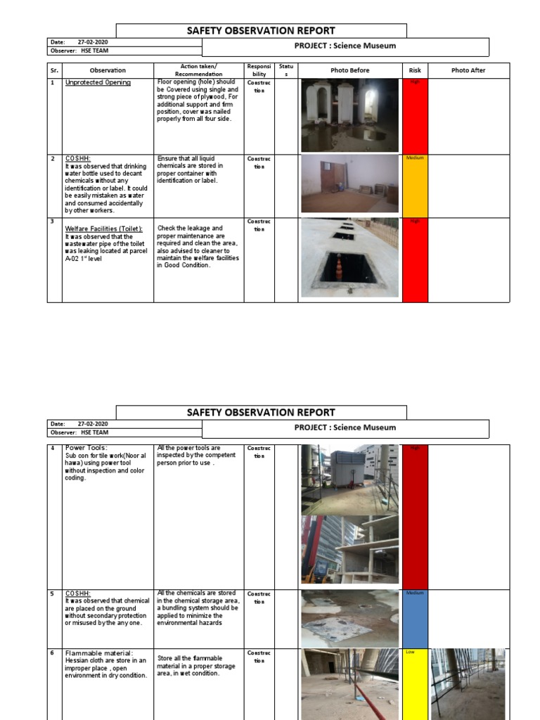 1 Unprotected Opening Floor opening (hole) should Construc High