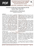 The major purpose of this study is to create awareness among adolescent college girls about PCOS.