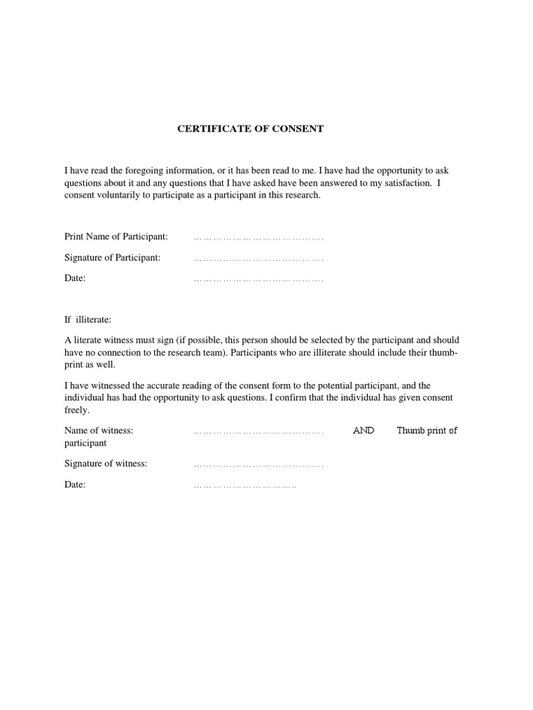 have no connection to the research team). Participants who are illiterate should include their thumb-