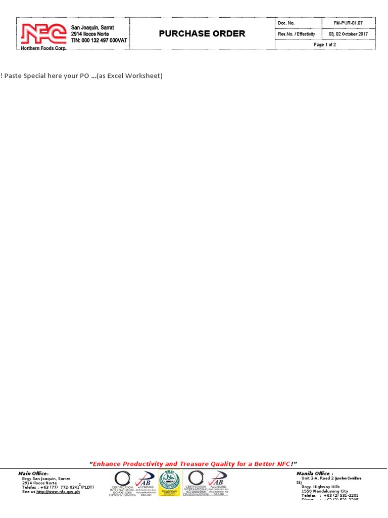 2914 Ilocos Norte PURCHASE ORDER Rev.No. / Effectivity 03, 02 October 2017