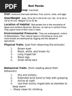 all they would get is a mouthful of quills! These are the adaptations that would help the Red Panda
