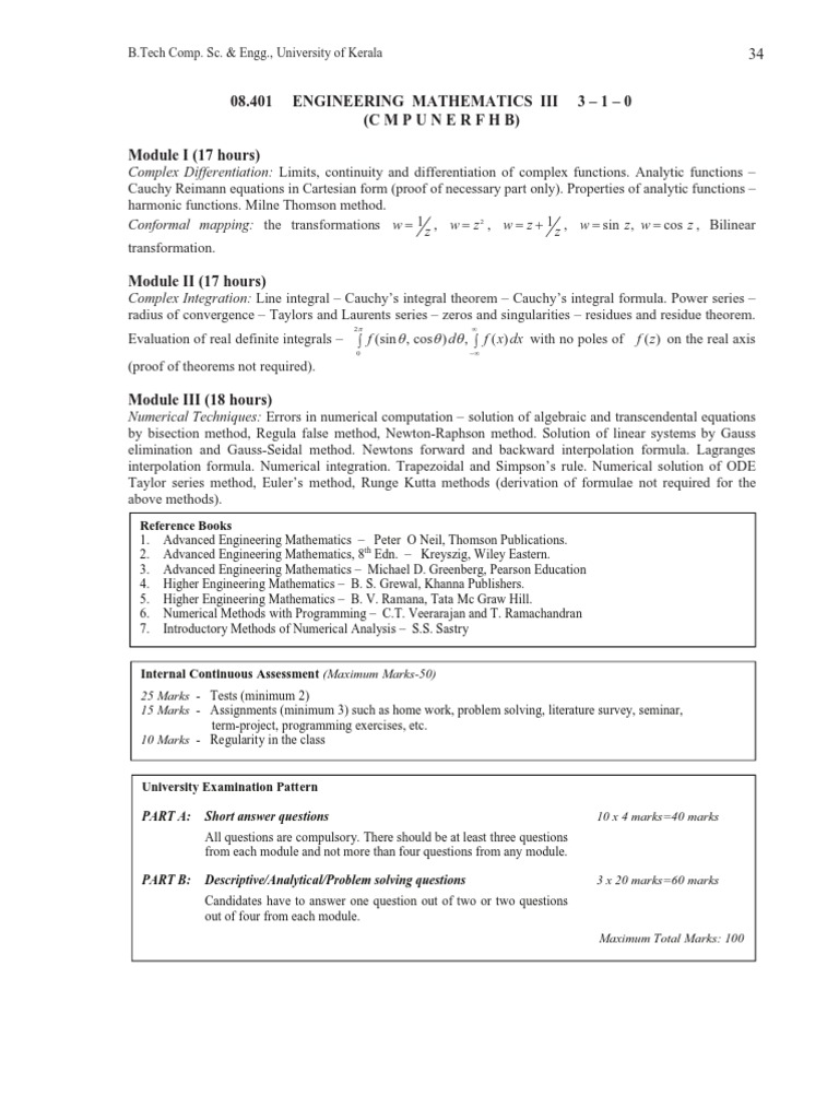 08.401 ENGINEERING MATHEMATICS III 3–1–0