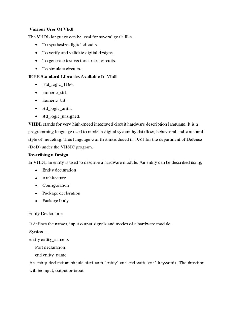 Various Uses Of Vhdl