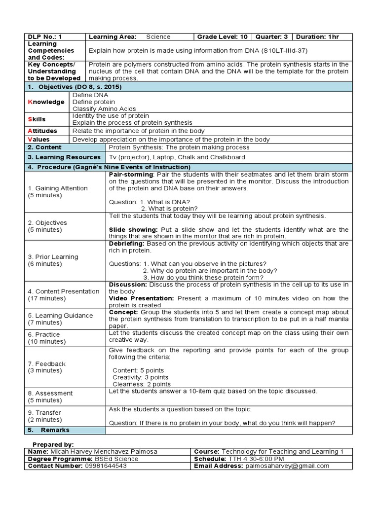 Competencies Explain how protein is made using information from DNA (S10LT-IIId-37)