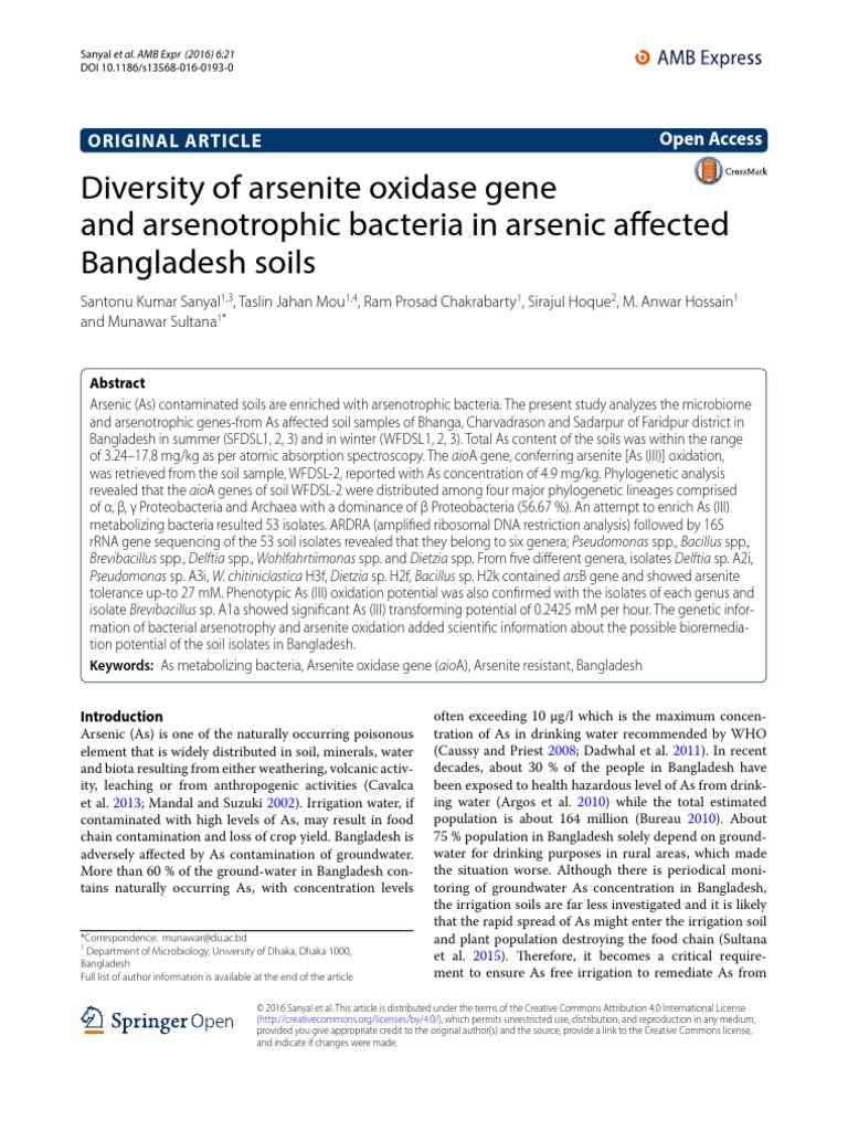 Environ Microbiol. 2004;70:1865–8. Sultana M, Sanyal SK, Hossain MA. Arsenic pollution in the environment: role