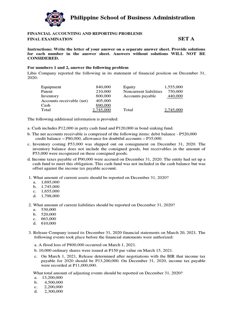 FINAL EXAMINATION SET A