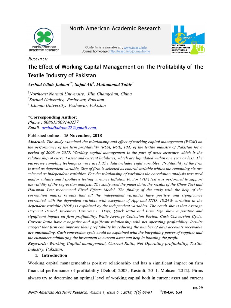 Abstract: The study examined the relationship and effect of working capital management (WCM) on