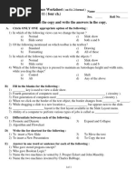 Worksheet: 5 Class IV (Subject: Computer) Date: 6th April
